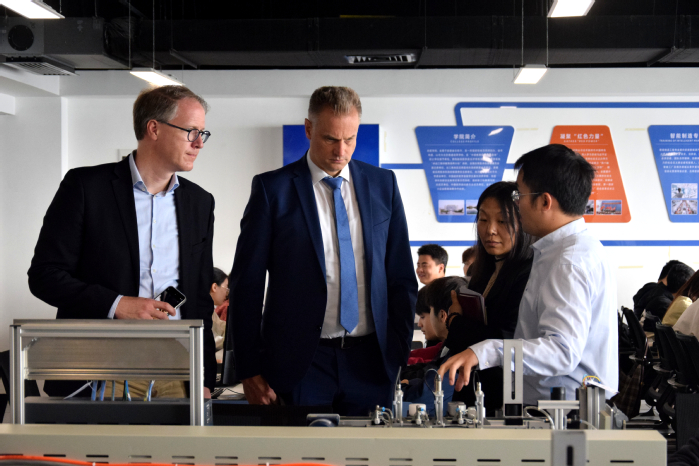 Wang Qidong begleitete Alexander Schmemann und sein Gefolge bei der Erkundung der Fakultät der Energie, Materialien und Chemical Engineering und das Volkswagen Institut.