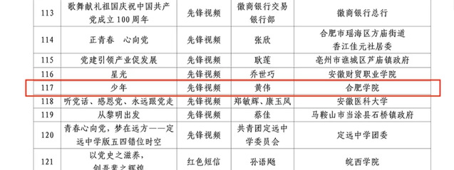 11月30日,中共安徽省委组织部、共青团安徽省委、安徽省学生联合会在全省青年党团员中开展的“青春心向党,百年正芳华”红色信息征集评选活动结果公布,我校参赛作品获得二等奖1项,三等奖1项。