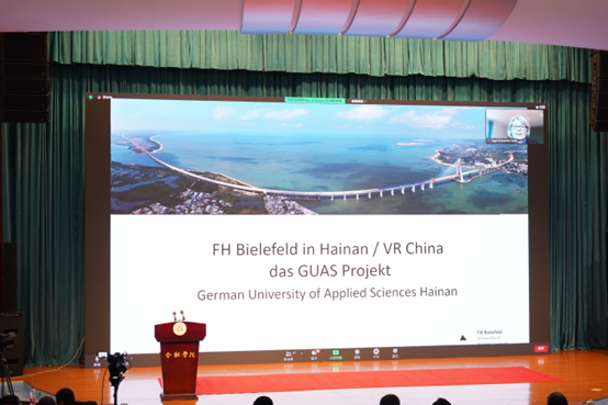 Als Präsidentin der FH Bielefeld hielt Prof. Dr. Ingeborg Schramm-Wölk eine Rede über den Aufbau einer deutschen Hochschulniederlassung in China. Sie meinte, dass diese Hochschulniederlassung von der FH Bielefeld das erste selbstständige Bildungsprogramm Deutschlands in China sei und gleichzeitig das erste selbstständige Bildungsprogramm von einer deutschen staatlichen Hochschule im Ausland sei. Diese Hochschule halte am internationalen und angewandten Bildungskonzept fest und biete notwendige Unterstützung für Kooperation zwischen Unternehmen und Universität, für integrierte Ausbildung von Fachkräften, für Umwandlung von Wissenschaftsstudien in Produkte und für Industrialisierung sowie eine Bühne für die Ausschöpfung potentieller Kompetenzen von Lehrkräften und Studierenden an, so dass es einen großen Einfluss bei der Ausbildung hochqualifizierter Fachkräfte und bei der Realisierung internationaler Hochschulen ausübe.