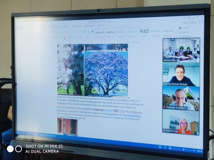 最后,贝尔特拉姆介绍了他们学校种下的健康树,祝愿大家在疫情期间身体健康,并期待与吴春梅在合肥学院或奥斯纳布吕克应用科学大学进一步加强沟通与交流。