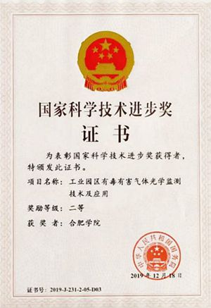 2020年1月10日,2019年度国家科学技术奖在京揭晓,共评选出296个项目。由中国科学院合肥物质科学研究院、中国科学技术大学、合肥学院等单位合作完成的“工业园区有毒有害气体光学监测技术及应用”项目,荣获国家科学技术进步奖二等奖,这也是我校环境团队再次获得国家科学技术进步奖。
