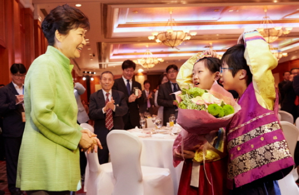 朴槿惠与260余名韩裔、韩侨代表举行午餐恳谈会(图片转自网络)