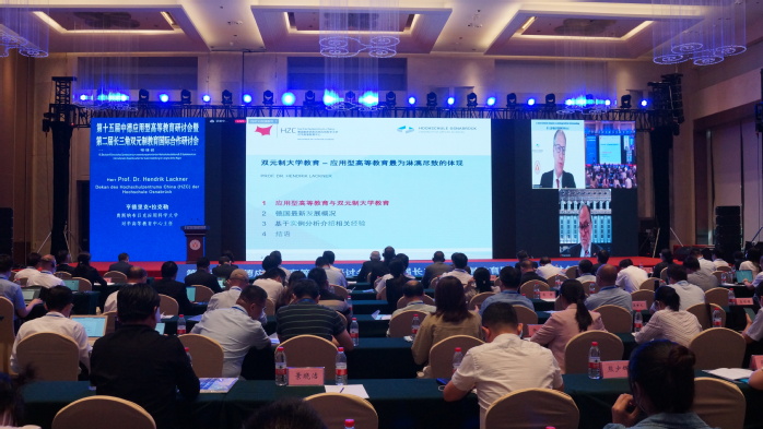 奥斯纳布吕克应用科学大学对华高等教育中心主任亨德里克•拉克勒作题为《论双元制大学教育作为应用型高等教育的至上原则》的报告。他从应用型高等教育与双元制大学教育、德国最新发展概况、基于实例分析介绍相关经验等方面阐释了双元制教育模式,他表示,企业的发展需要大批高质量应用型人才,高校的人才培养要紧密结合企业需求,将理论与实践紧密结合,双元制为应用型大学的特色化发展提供了新的机遇。
