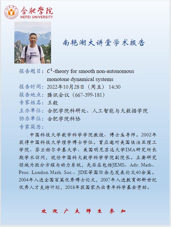 【讲座预告】C¹-theory for smooth non-autonomous monotone dynamical systems