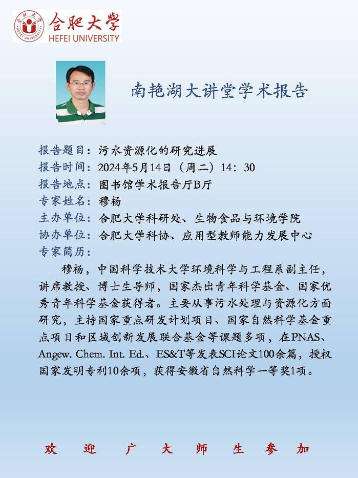 【南艳湖大讲堂】污水资源化的研究进展