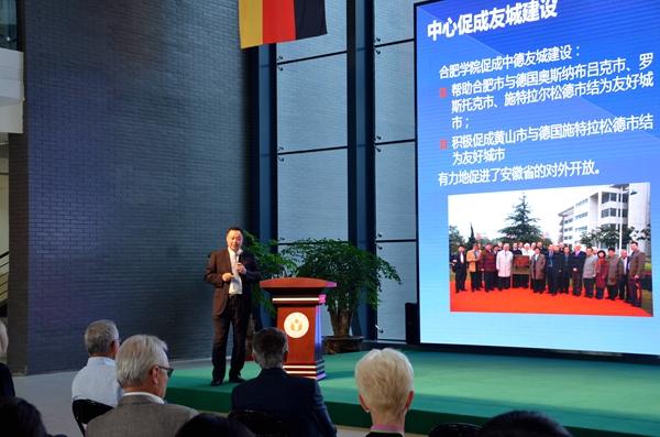 Er erwähnte, dass die Universität Hefei als eine Universität gilt, die in der Reform entstanden, in der Öffnung aufgewachsen sei, sich in der Innovation entwickelte und als „Xiaogang-Dorf“ in der Reform der chinesischen Hochschulausbildung bezeichnet wurde. Im Bereich der Zusammenarbeit mit der deutschen Seite gehe die Universität Hefei auf einem charakteristischen Weg, wobei die Universität Hefei Forschung, Innovation und Praxis vom deutschen Ausbildungssystem für anwendungsorientierte Fachkräfte als Beispiel nehme und modulare Unterrichte aufgestellt habe.